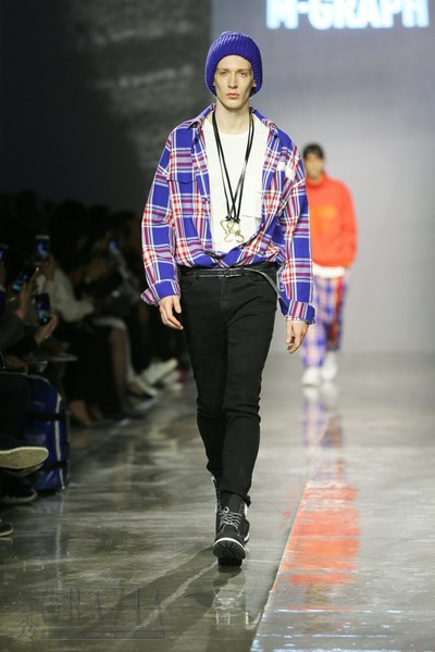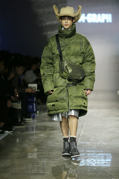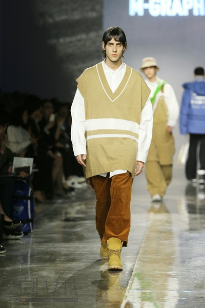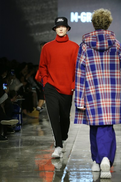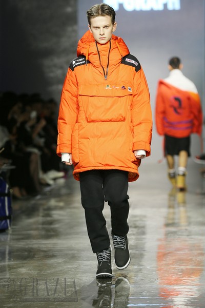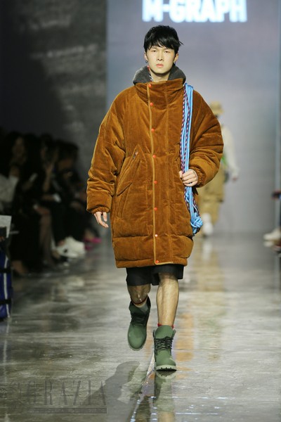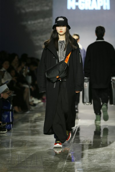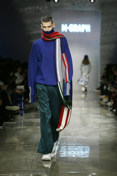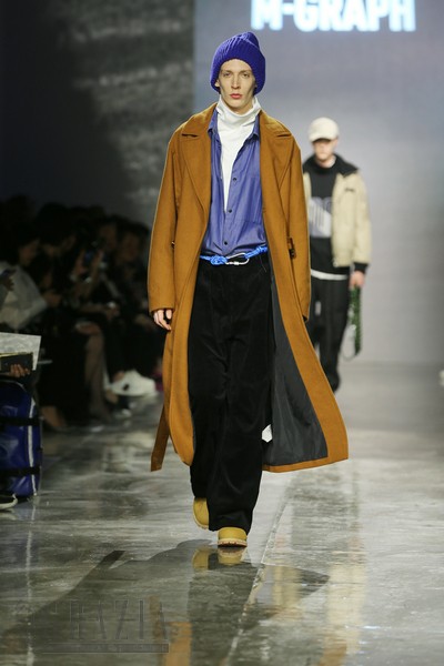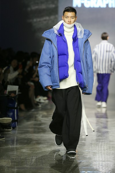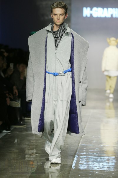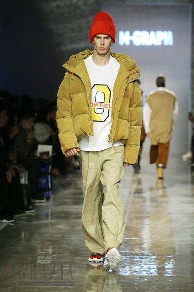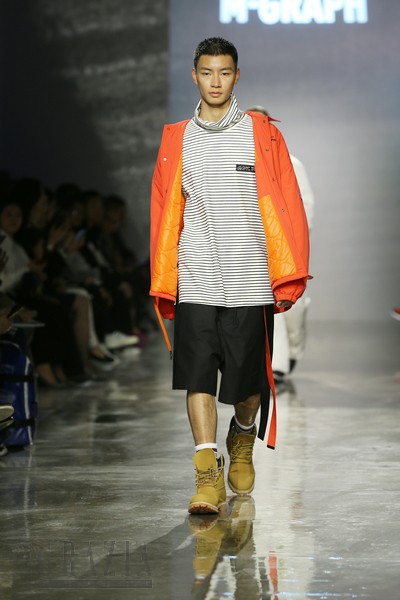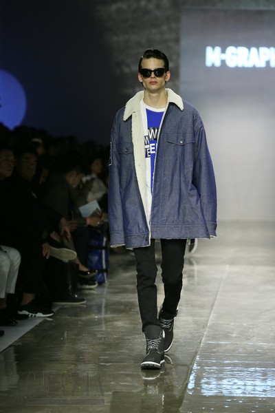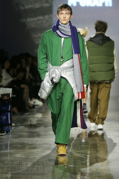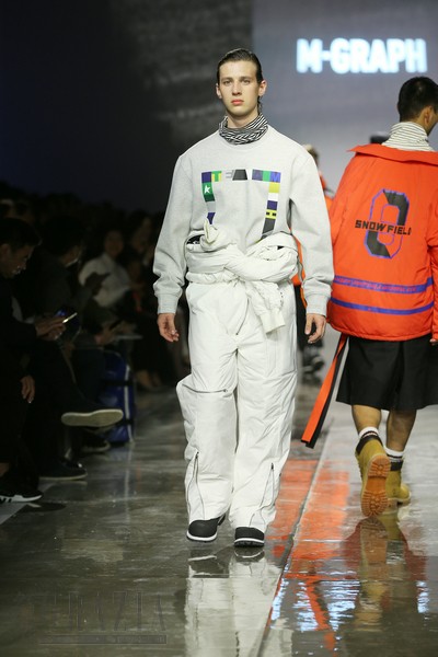 设计师的灵感源于深受年轻人钟爱的雪地运动,“雪地冒险”成为M-GRAPH 2018AW主题,以轻松、混搭的设计概念为基础,将雪地、雪山震撼的视觉感官、运动项目的警示标志和赞助商logo等衍化到当季服装中,并从专业滑雪服中找寻到专业机能性融入本季新作。借以雪地冒险中的各种元素,年轻人勇于探寻的精神融入着装,带给穿着者由内而外、自由轻松的实穿体验。2018AW M-GRAPH以舒适廓形、户外DIY机能服、连衣裤、运动卫衣为主,在袖口处特别还加入了网布等异素材拼接设计,不拘一格的喷溅印花及彩色贴布绣更进一步丰富了细节质感。“轻松感、机能性、活力态度”,M-GRAPH致力于为那些对时尚有着鲜明态度和自我要求的潮人打造既满足日常功能又充满诙谐趣味的服装,紧随潮流的个性设计、高品质面料带来的舒适感及超强的可搭配性成为品牌多年不言自明的标签。本季秀场,在设计师的巧妙搭配下,中外男模亲身演绎了高机能型面料与天然材质带来的有趣碰撞,科技感的光泽性面料与粗粝的牛仔面料、质朴的棉麻打造出丰富层次,以“反穿”、“拼接”、“错位”、“COLOUR BLOCK”等手法,迸发出无尽新意,让观者仿佛置身于高山雪地,全程带着发惊喜的心情去重新发现可以玩酷的功能主义。