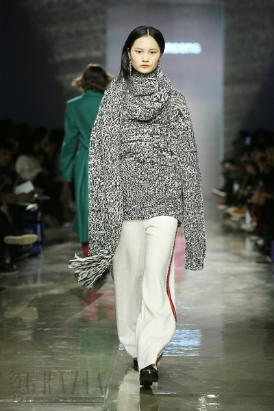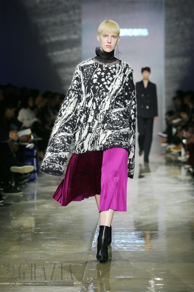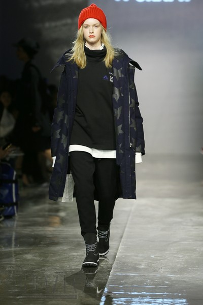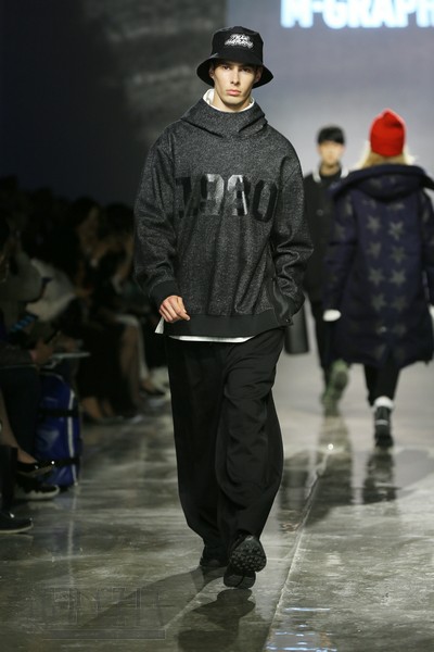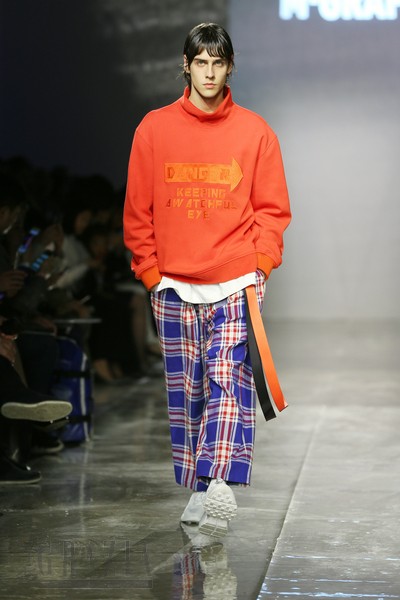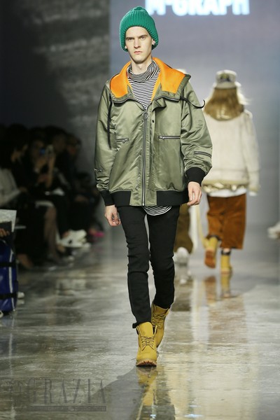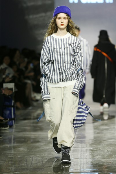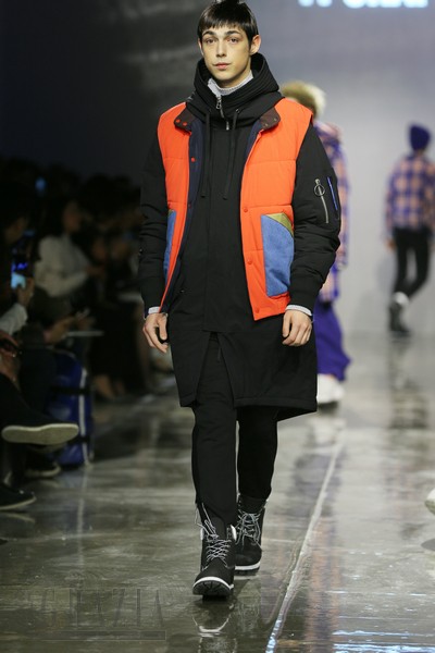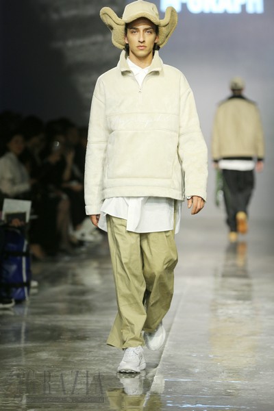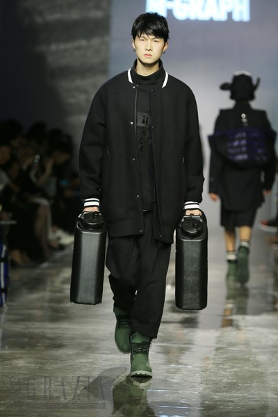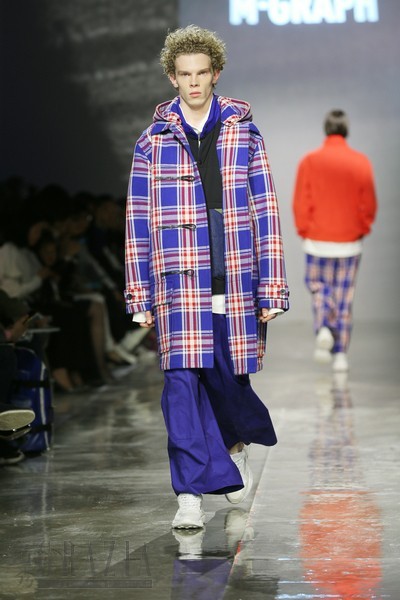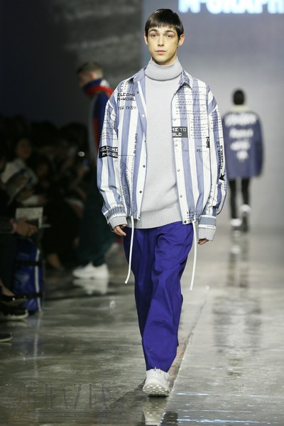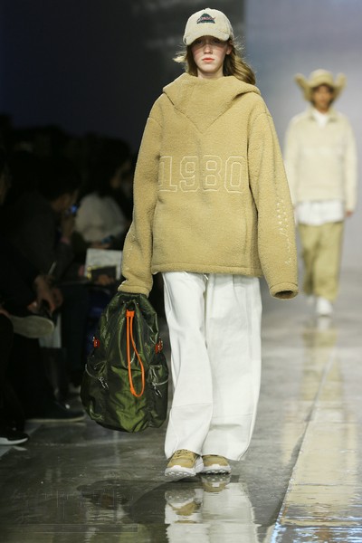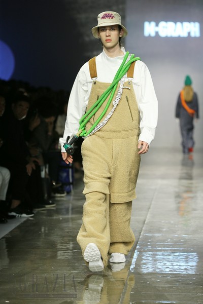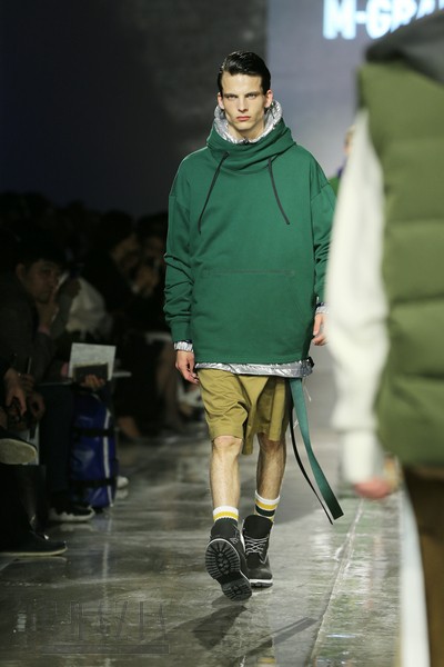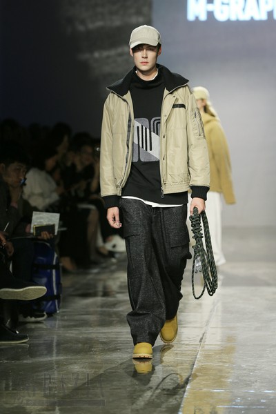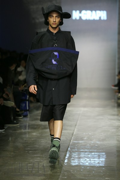 设计师的灵感源于深受年轻人钟爱的雪地运动,“雪地冒险”成为M-GRAPH 2018AW主题,以轻松、混搭的设计概念为基础,将雪地、雪山震撼的视觉感官、运动项目的警示标志和赞助商logo等衍化到当季服装中,并从专业滑雪服中找寻到专业机能性融入本季新作。借以雪地冒险中的各种元素,年轻人勇于探寻的精神融入着装,带给穿着者由内而外、自由轻松的实穿体验。2018AW M-GRAPH以舒适廓形、户外DIY机能服、连衣裤、运动卫衣为主,在袖口处特别还加入了网布等异素材拼接设计,不拘一格的喷溅印花及彩色贴布绣更进一步丰富了细节质感。“轻松感、机能性、活力态度”,M-GRAPH致力于为那些对时尚有着鲜明态度和自我要求的潮人打造既满足日常功能又充满诙谐趣味的服装,紧随潮流的个性设计、高品质面料带来的舒适感及超强的可搭配性成为品牌多年不言自明的标签。本季秀场,在设计师的巧妙搭配下,中外男模亲身演绎了高机能型面料与天然材质带来的有趣碰撞,科技感的光泽性面料与粗粝的牛仔面料、质朴的棉麻打造出丰富层次,以“反穿”、“拼接”、“错位”、“COLOUR BLOCK”等手法,迸发出无尽新意,让观者仿佛置身于高山雪地,全程带着发惊喜的心情去重新发现可以玩酷的功能主义。
