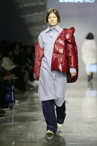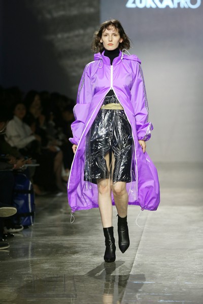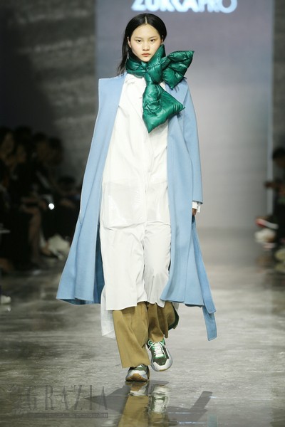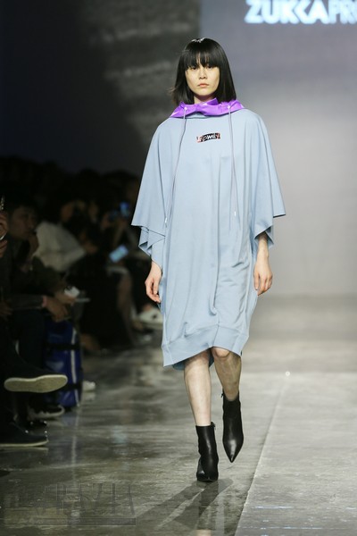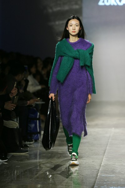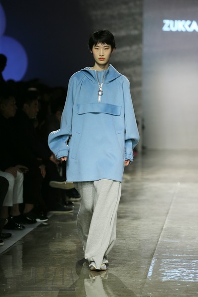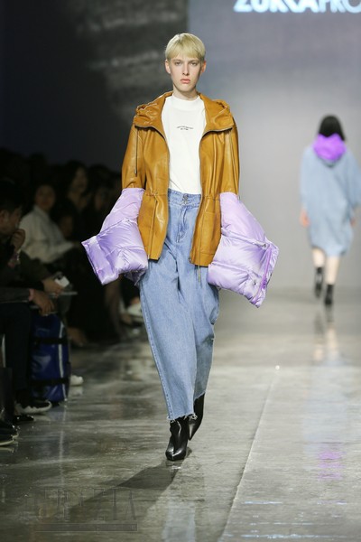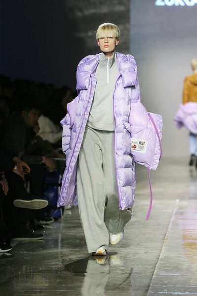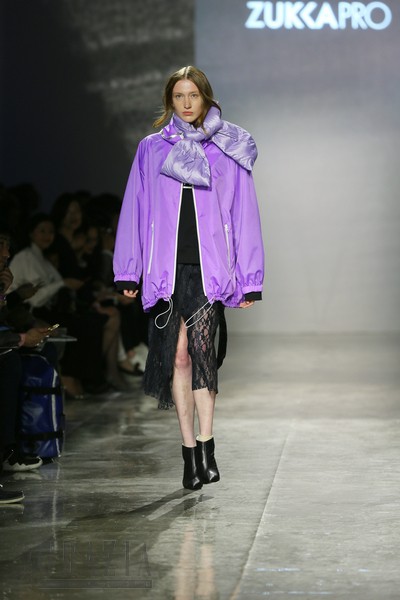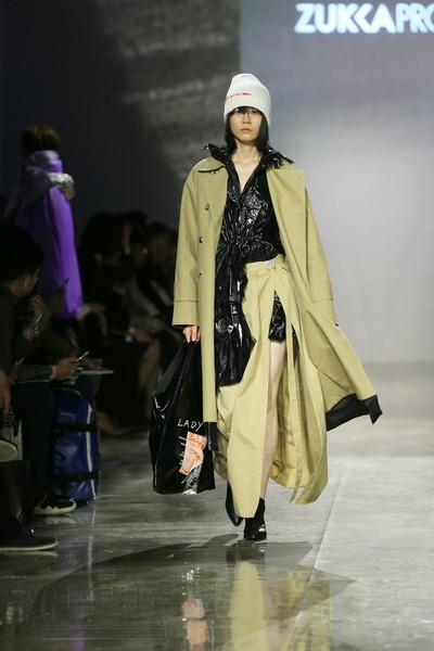 当模特身着宽大的廓形外套、功能型面料风衣、户外感羽绒服,挎着购物篮、咖啡机等生活道具出现时,ZUKKA PRO 2018AW“lady Z’s home| Z小姐的日常”被搬上秀场。我们的时尚剧女主、Z小姐和她的有趣生活,成为了这场大秀的主题故事。她独立,率性、热爱艺术,也喜欢时尚。整个系列以紫色、酒红色、牛仔蓝、白金色系为主色调,隐藏的撞色罗纹、运动户外感抽绳橡筋、不经意的细姐揭示了Z小姐那有趣、有料、有品的当代时尚态度。而Z小姐的居住环境,她在家的休闲状态,她日常的形象和家里的花卉以及那些有趣的小故事,都以幽默的插画形被绘于时装之上,而她的个性宣言,则以大胆直白的Slogan与大色块脸谱化的印花加以呈现。设计师们捕捉生活中那些容易被忽视的美好细节,将其转为设计语言,带我们步入lady Z的美好生活。这也正是ZUKKA PRO要传递的理念——时尚可以很有趣,时尚本就可以很日常,Lady Z就是活出女子力的Role Model,在日常中实力演绎率性不羁的高段位穿搭。