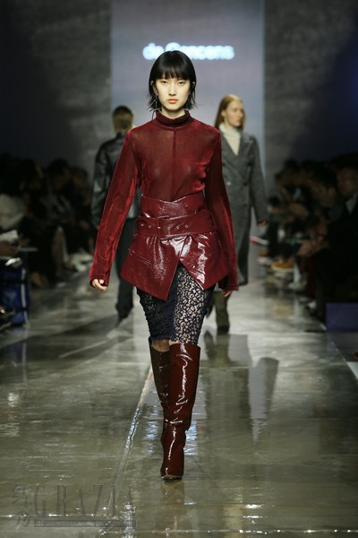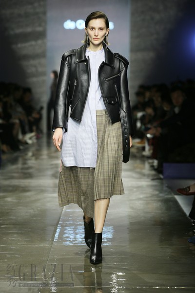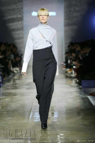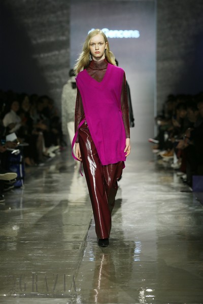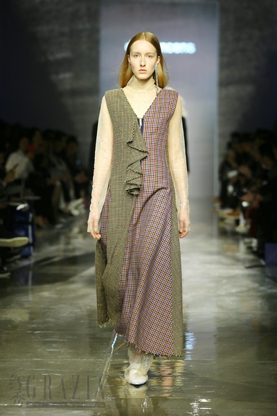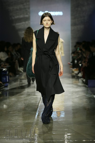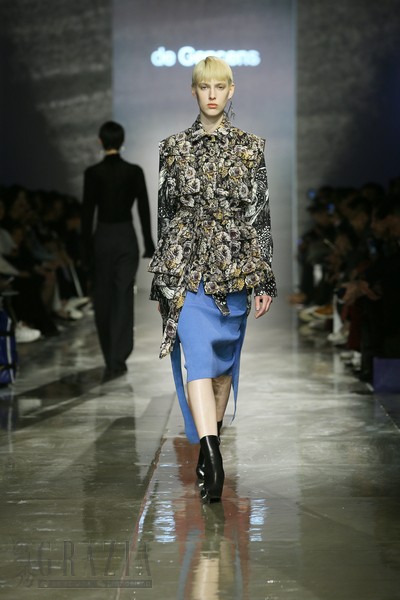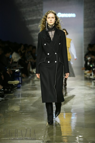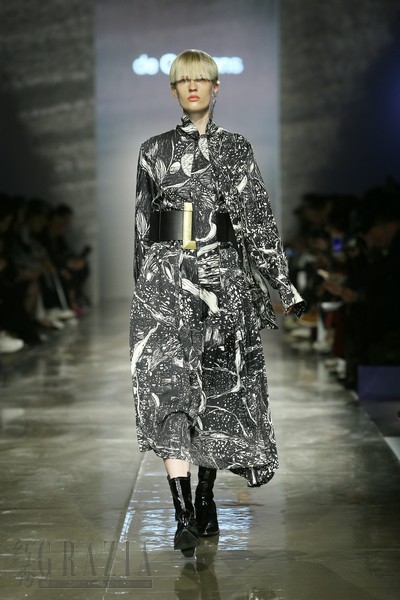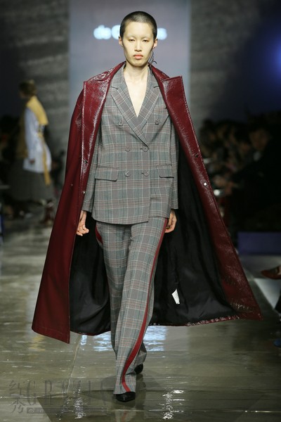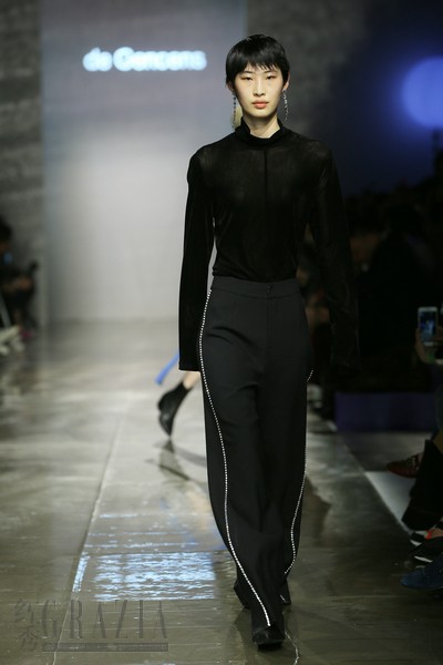 设计师以20世纪最伟大的女性建筑师Eileen Gray的建筑作品为灵感源,为我们带来了一场致敬偶像的华丽表演。这位划时代的建筑大师,率先启用钢管家具设计成为后世经典之作,其作品简约而富有现代感,同时具有女性气质的婉约与装饰感。de Gencens 2018AW延续了品牌一贯的简约风格,将Eileen Gray设计作品中材质的碰撞,色彩的运用等设计手法运用到服装设计开发中:比如在黑色、酒红色等基础色上加以蓝色、枚红色、卡其色等点缀色,既体现了刚柔并济的品牌风格,同时也呼应了主题灵感。本季新作中设计轮廓以H型廓形为主,辅以宽肩、收腰等设计,在优雅与性感中又放入了禁欲元素,局部则被别具匠心地植入手写刺绣、局部剪边、线条形珠片装饰、面料拼撞等细节,正如Eileen Gray在她的传世经典之作E-1027别墅那样,把多重元素完美融合起来,通过服装面料、结构和细节的打磨雕琢,最终构成完整独立的作品。Eileen Gray曾说,在做设计的时候要不断质疑自己,保持好奇。de Gencens的设计师们将这句经典语录贯穿于本季全系列之中,不断打破边界,力求创造未知的融合,发现的是坚定亦温润、内敛亦张扬的“完美矛盾”。