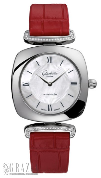 皮质上衣加连衣裙带来职场敢为人先的干净利落,搭配格拉苏蒂原创灵雀腕表,让鲜明的红色表带成为点睛之笔,独特的“枕型”精钢表壳源自20世纪20年代,方寸之间尽显经典的优雅曲线。超薄珍珠母贝表盘散发天然的光芒和质感,富于巧妙构思的镶钻表耳设计更实现可拆卸功能,让你于不同色彩、材质表带间随心切换搭配,变换多种风格。