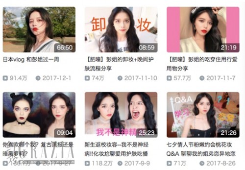 彭美丽是典型的95后,粉丝大多也以95后为主,互动量高,粘性极强,在微博上单条视频播放量最多突破1000万,在B站平均视频播放量保持在80万左右,能经常看到弹幕铺满屏的壮观场面。