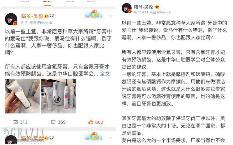 知名美妆老师-吴淼也是这款牙膏的爱用者,之前也在微博推荐过。连续使用两周能明显感受到牙齿变白,但还是要依照每个人的状况而定。