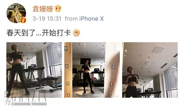 令人变成柠檬精的还有袁姗姗的马甲线。从春天就开始打卡,“马甲线女王”锁了。