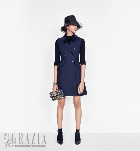 于是,迪奥套装(Bar Jacket)经由剪裁、面料和天鹅绒领这些元素,以更男性化的线条被重新演绎。通过裙装的叠加和特殊面料使其更加柔软,该面料也被运用于以迪奥先生的夹腰廓形为灵感来源的裙装之中。 这是一次对五十年代的概念性风格解读,将运动风格与迪奥品牌的标志性优雅精湛混合。