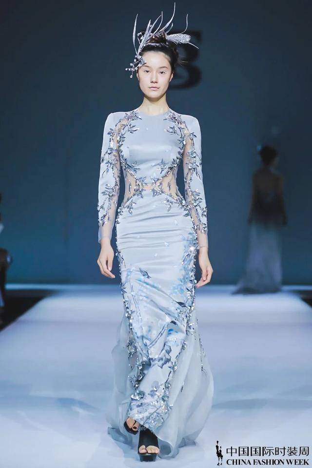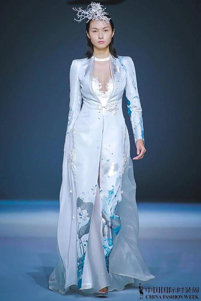这是薄涛时尚艺术设计中心继2011年中国国际时装周"水墨乾坤"发布会之后,再一次以国宝级的故宫藏画为元素的系列发布。与上次不同,设计师在色彩上主要选择银、绿、蓝、黑、白等优雅别致的特别定制面料,以白银灰、银灰蓝绿、黑灰银3组颜色过渡,时尚又不失贵气。