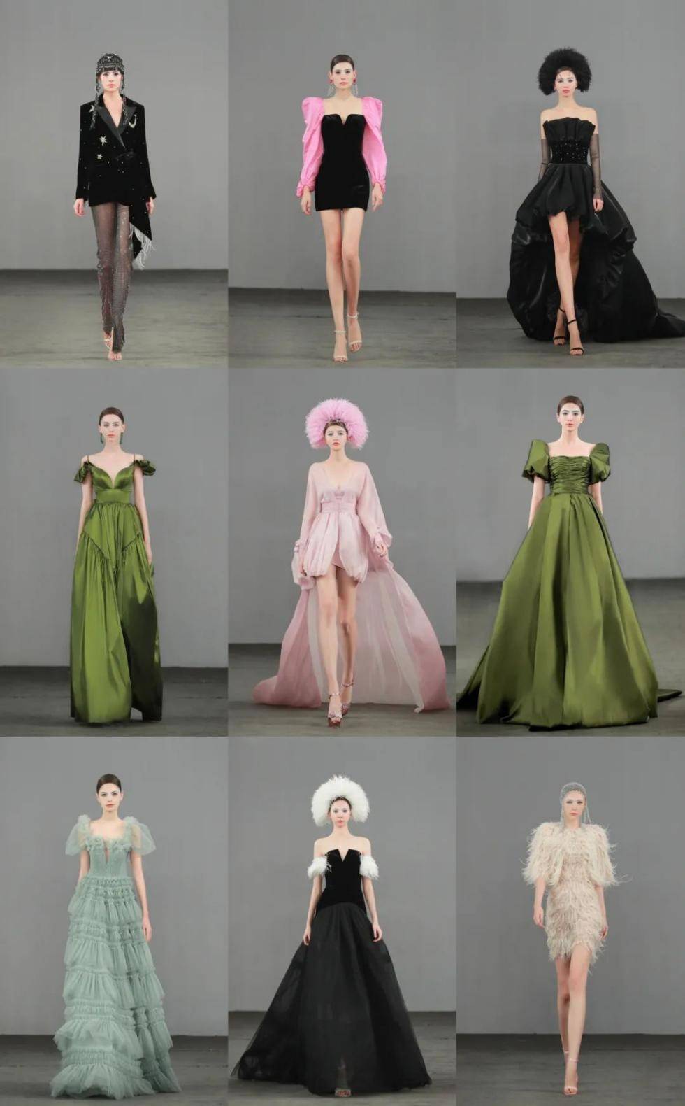 耗时2个月的羽毛斗篷礼服,精选南非鸵鸟毛,纯手工剪裁、染色、刺绣只为展现出轻盈飘逸的质感,布满亮片的连体裤装更是凸显时尚感。
