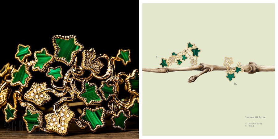 迪奥DIOR LEAVES OF LOVE(常春藤)珠宝系列灵感来源于常春藤,它象征着忠诚和永恒之爱,缱绻缠绕间封存真挚誓言,传递“终其一生,相依相偎”的隽永诗意。迪奥DIOR此次珠宝系列以鲜翠欲滴的蔓生藤叶为主题,让人不得不联想起柔情款款的告白。