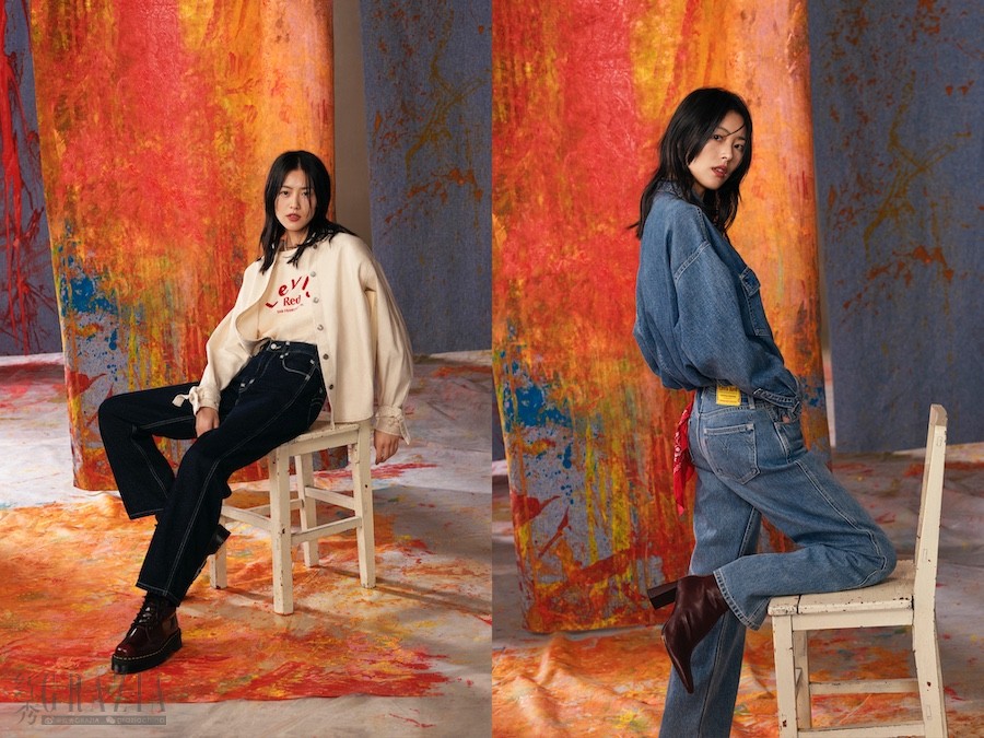 女装,复古经典的设计风格同样贯穿女士裤装,别具一格的双缝线设计,让牛仔裤型不易变形更紧致,巧妙修饰腿部线条;No yoke西装腰头设计,搭载黄色皮牌,经典重现纯正Red血统。在颜色上,提供经典靛蓝色与黑色丹宁,为整体风格注入高级质感。上装部分,以挺括丹宁面料结合美式复古剪裁,碰撞出兼并柔美与个性的牛仔造型。或以Levi’s® 经典Logo卫衣作为舒适内搭,运用中国红配色尽显新春氛围,在致敬春节的同时,依旧不改Levi’s® Red先锋系列的先锋精神。
