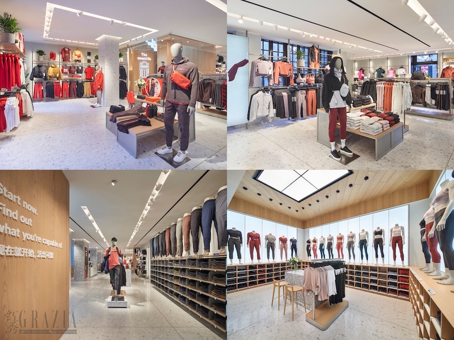作为目前国内面积最大的lululemon门店,上海新天地门店在细节处精心设置了许多富有巧思的设计。在整体布局上,一层为男装与lululemon当季特别系列,二层为女装,三层为独立运动空间。其中,具有品牌代表性的男女装裤装墙,根据丰富多彩的颜色与运动属性分门别类的整齐排放,给予顾客直观的视觉冲击与清晰的选购指引。门店内集结了从瑜伽、训练、跑步到日常通勤出行装备,以及特别合作的限定系列,齐全的种类满足顾客在不同场景中的搭配需求。