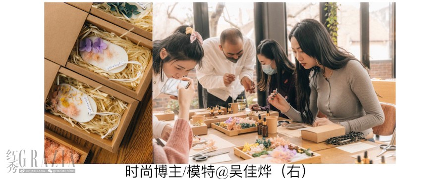 应本次活动主题,现场为大家准备了手工香薰蜡牌DIY体验,嘉宾可调制自己喜欢的香料,并附以花束装饰,感受手作的温暖与趣味,也希望借这极具巧思的体验激发大家的生活灵感。