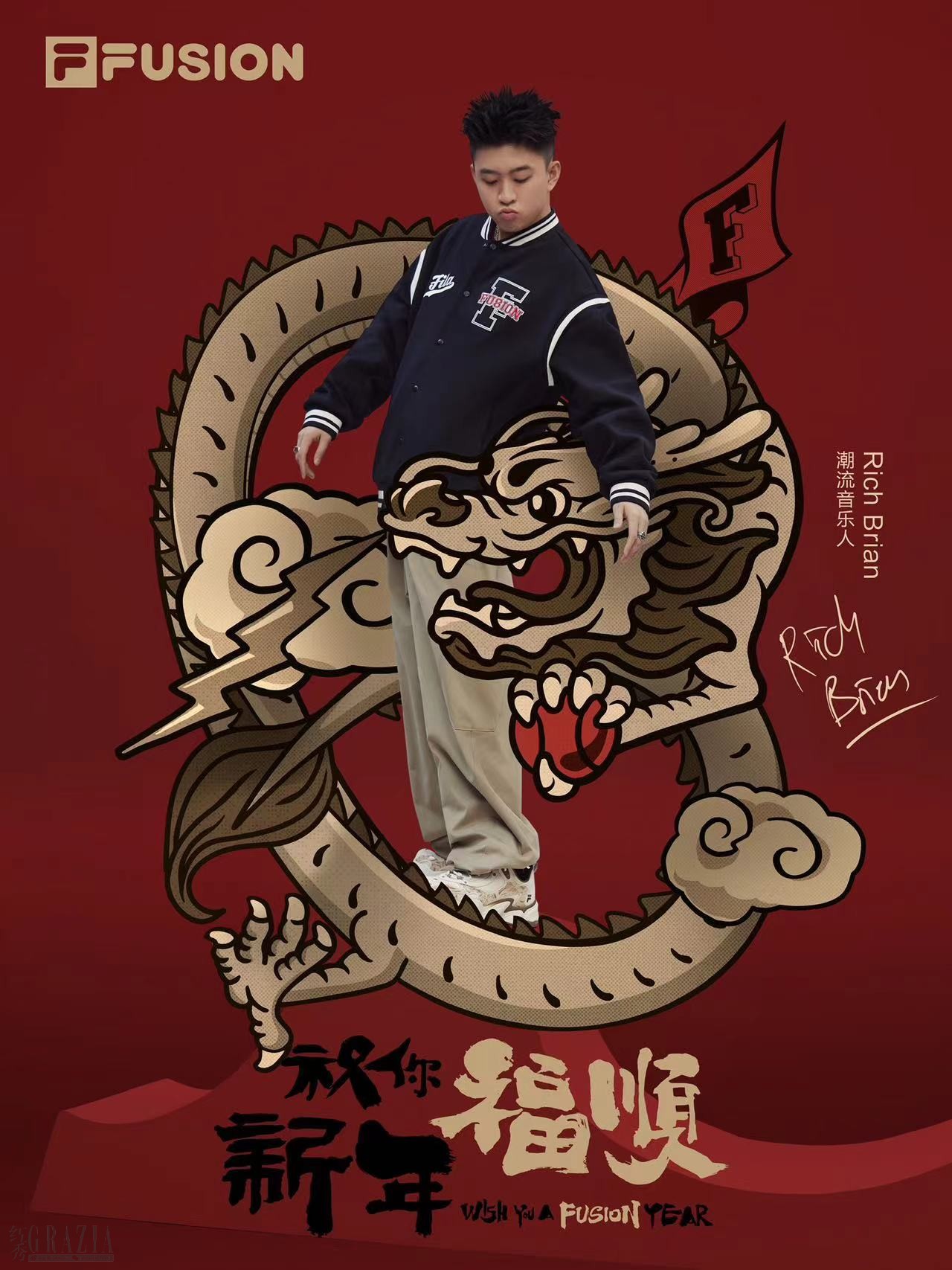 来自印度尼西亚雅加达的Rich Brian是亚洲说唱歌手的年轻代表,创作能力出众的他已向全球潮流音乐爱好者证明了自己的才华。他的音乐有着自己鲜明的特色,擅长将多元文化融入自己的音乐世界。舞台之外,仅24岁的他以幽默的个性与专业音乐水准形成反差,完美诠释FILA FUSION“万变因我 STAY IN FUSION”的品牌理念。龙年即将到来,双方携手展现创意十足的新年祝福,这正是FILA FUSION在推动全球青年文化融合上的态度表达。