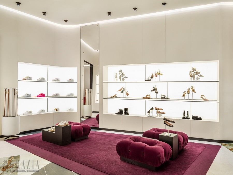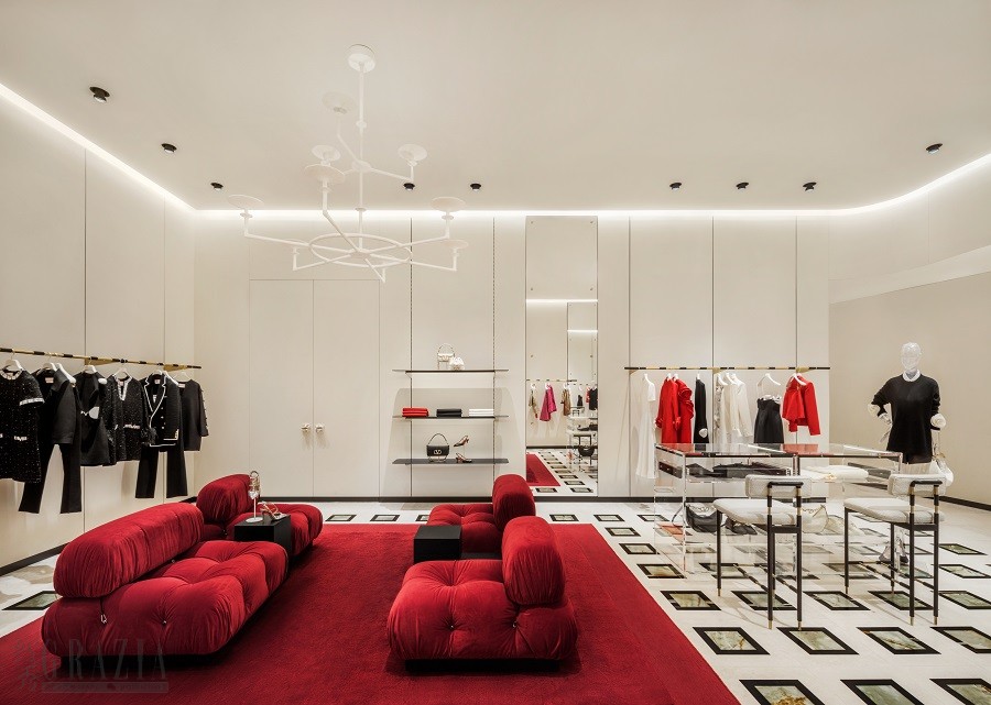 装潢一新的Valentino精品店,一层占地面积超过108平方米,另一层占地面积超过140平方米,标志着Valentino在以全新门店概念开启的全球零售网络扩张中迈出了重要一步。Valentino的全新门店设计概念源于对品牌与客户关系的重新审视。Valentino以这一理念为核心,阐释设计故事;以这一理念为基调,打造独特的客户体验。意大利文化的热情好客成为打造完美门店旅程的灵感,在服务团队的引导下,顾客穿过精心设计的空间,充满仪式感。Valentino将人与人之间的联系置于核心地位,每家门店由此成为滋养品牌精神的沃土,也成为进店顾客的私享空间,淋漓展现Valentino的标志性风格和意式高定传统。