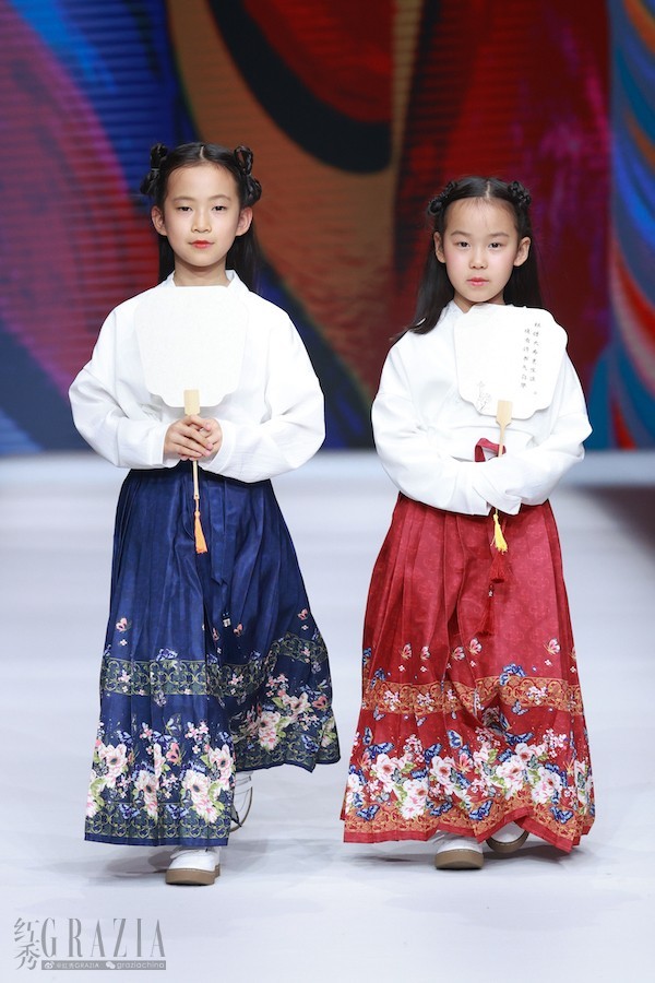“合创”系列重点展现融合传统文化后的设计新生。马面裙、盘扣、斜襟设计、团花图案等比比皆是的中式服装元素,在潮流化设计语言的作用下,将来自悠久文明的文化自信传递至孩子的未来,引领国风时尚进入又一个高潮。色彩方面,既可通过炽烈的浓郁色彩展现华夏风韵的大开大合,也可通过和煦柔美的色调来凸显东方美学的清灵秀雅。