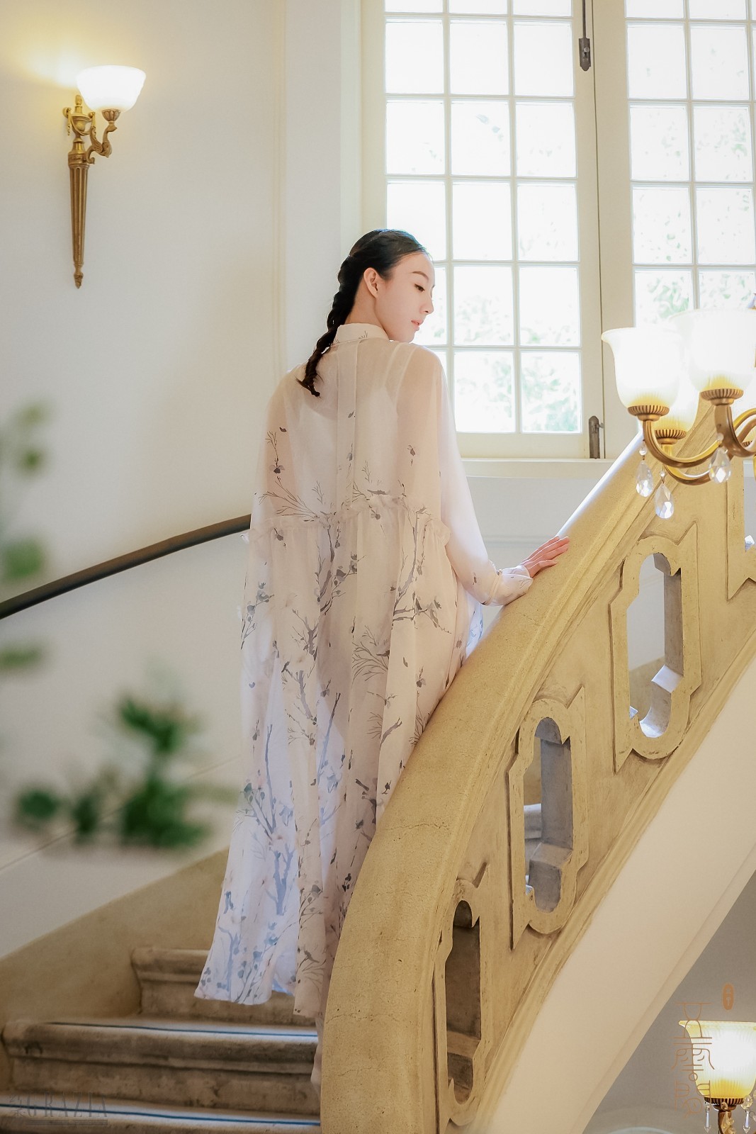 这幢法国古典主义风格的洋房气势非凡,典雅大气,以中间外凸的半圆为中轴线,两翼严格对称,中轴线上一条石质宽阔廊桥飞架,连接花园和主楼,直抵因主人交游广泛而略显喧闹的二楼客厅,而三楼是只属于主人的私密空间,宽大阳台更俯视整个花园喷泉,这里正是本次五云间沉浸艺术发布会所在地,绝妙契合本次“东方·新中式”的“园游绮梦”主题。