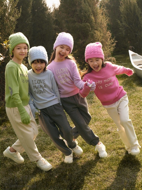 erdos KIDS 2024秋冬以“WARM HUG拥抱”为主题,羊绒作为故事主角,诠释拥抱带来的亲密连接和能量,定格爱和陪伴的美好时刻。属于拥抱的旅程穿梭于童话场景之中,被小动物和天马行空的图案包围,用柔软的形态带来成长途中的温暖与美好。从多元着装场景出发,本季推出俏皮欢快的灵蛇复古新年系列,正式场合感的学院风套装以及棉花糖般柔软的新生儿系列。高端材质也贯穿本次旅程,羊绒作为核心的同时加入牦牛绒、羊毛、白厂丝等高级天然材质,在丰富品类及设计风格的呈现中,充满质感与温暖呵护。