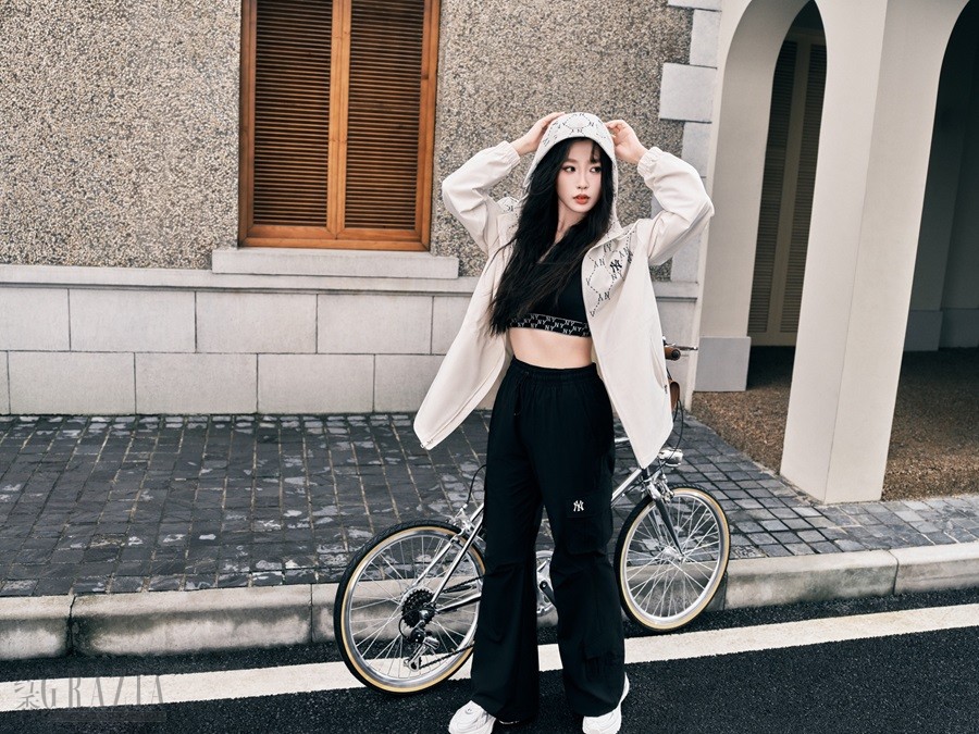 MLB潮流品牌代言人虞书欣演绎2024秋季MONOGRAM珍珠白钻石老花防风衣