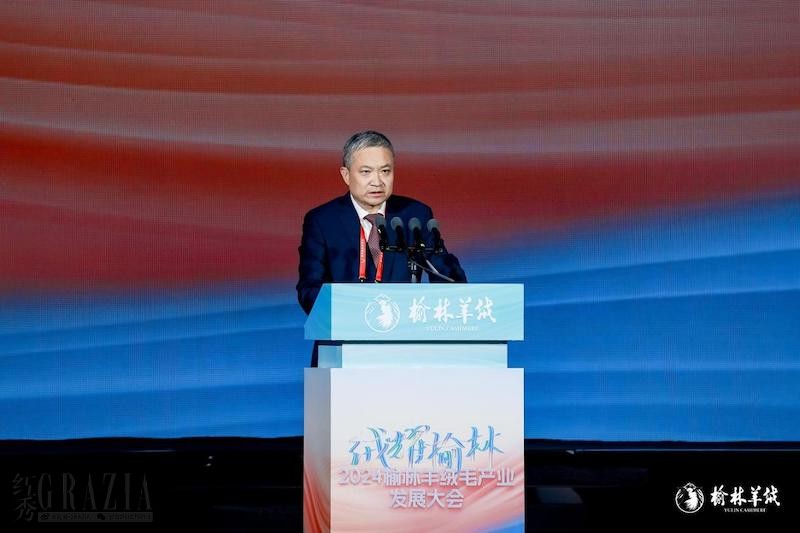 榆林市委常委、统战部部长王华胜,中国服装设计师协会专职副主席朱少芳分别为大会做精彩致辞。榆林市工业和信息化局局长高志钧对榆林羊绒毛产业做详尽推介,中国毛纺织行业协会副会长刘焱作羊绒毛产业发展趋势报告。