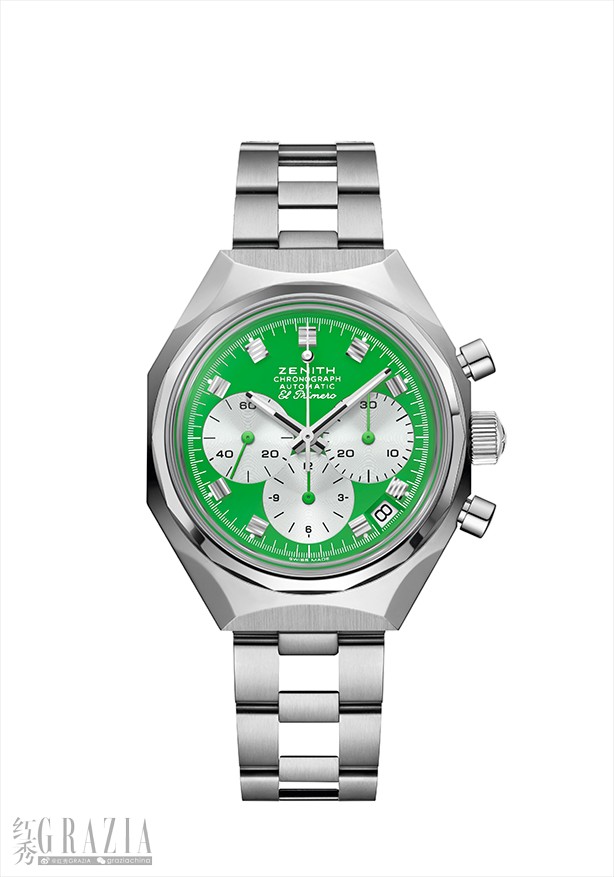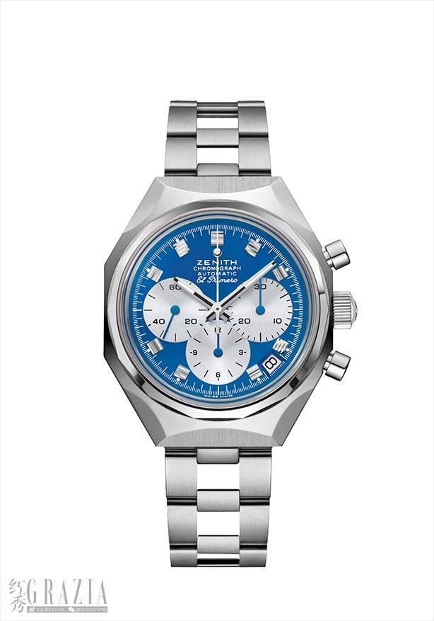 亮点: El Primero导柱轮自动计时机芯。硅质擒纵轮及擒纵叉。旋入式表冠。