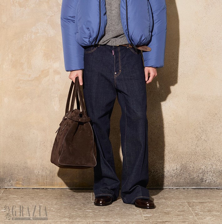 男女同款的Twin托特包则进一步延伸系列精神,精选光滑小牛皮或柔软麂皮材质,以极简廓形承载超大容量。所有Twin包款均饰以具有建筑美感的金属质感Dsquared2徽标,这一画龙点睛的设计元素成为品牌辨识度的最佳注脚。