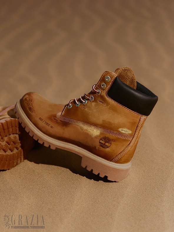 为了进一步加深合作维度,Timberland特别推出 Timberland x 徐明浩 THE 8 定制款黄靴。该鞋款以品牌标志性的经典大黄靴为设计蓝本,将徐明浩的个人风格与创意巧思融入细节设计:鞋面上的做旧痕迹象征着每个人在人生旅途中留下的印记与真实的成长故事;点缀其间的金属色元素,如同生活中偶然闪现的微光;而采用镭射工艺刻印的 “The ♾”标记,则寓意生活无限的可能性。此次联名款限量 208 双,仅限中国大陆发售,每一双都独一无二,既是Timberland经典的延续,也是年轻一代个性化表达的承载。