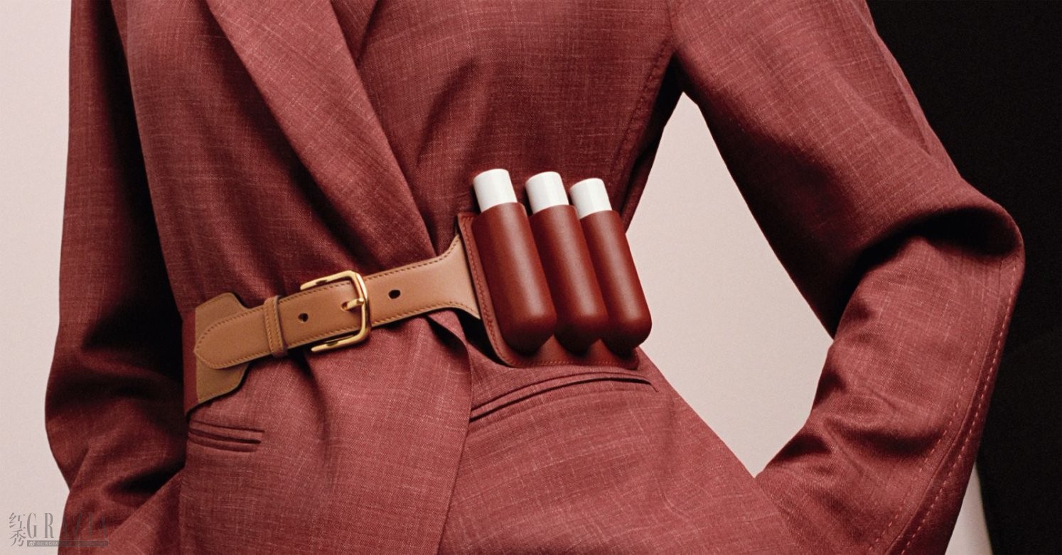 自由、灵巧、率性,Rouge Brillant Silky 丝润 晶 透唇膏可搭配一款双色配件随身携带, 尽 显风格魅力。女士们可将它佩戴在腰带上, 让它随身体的律动而款摆,成为她们日常举止的 一道风景,彰显出为爱马仕所珍视的实用之美。 马蹄铁弧形扣头腰带,零钱包式腰带,马镫 型扣头腰带和可变换式腰带皆是品牌历史的 一部分,与马具工艺密切相关,也体现了金属 与皮革的巧妙结合。从钥匙扣到肩背包,功能 性始终与风格并行不悖。