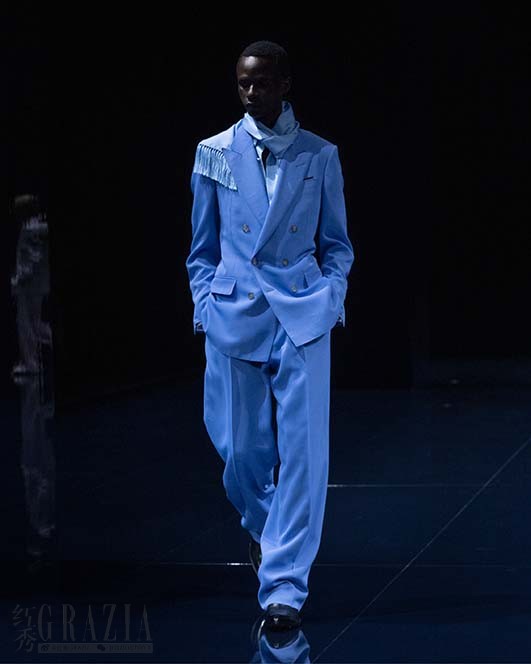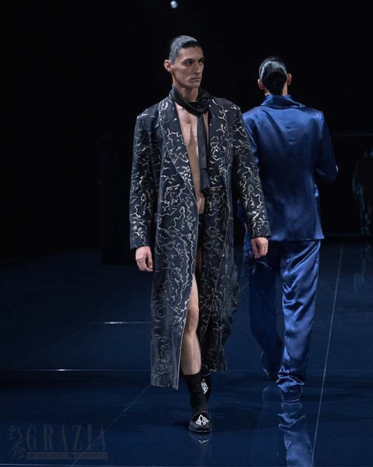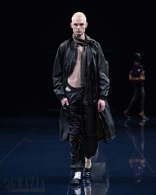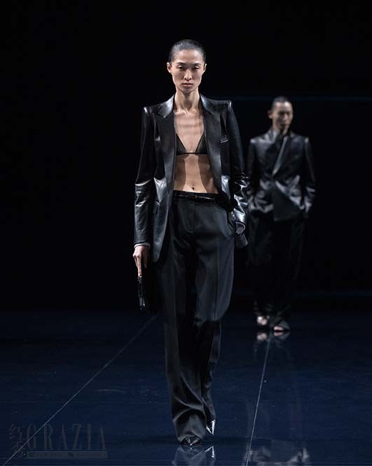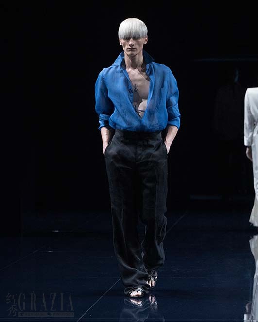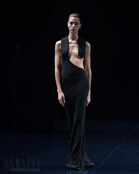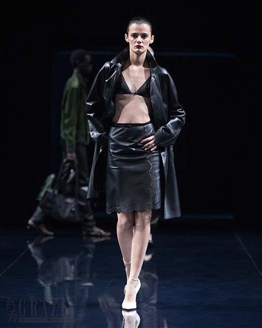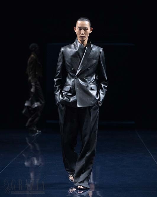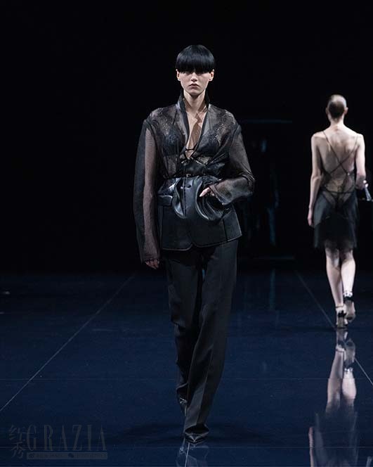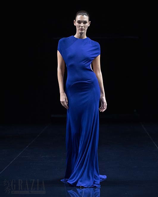 月光映照于深海般的午夜蓝漆面,本季作品在欲望交织中娓娓道来。修长垂坠的轮廓,呼应着每个揭示与吸引的姿态,脆弱化为慑人的力量,幽微的暗涌自细节中悄然浮现:一抹肌肤于开衩间乍现,或隐于蕾丝之下;凉鞋上的金属环扣、若隐若现的皮革胸衣,皆是欲望的轻声低语。