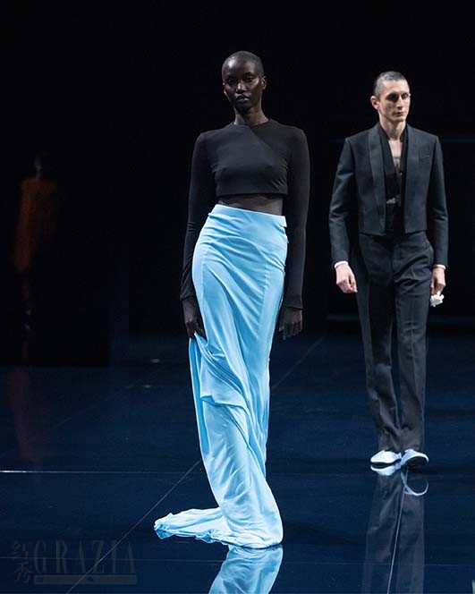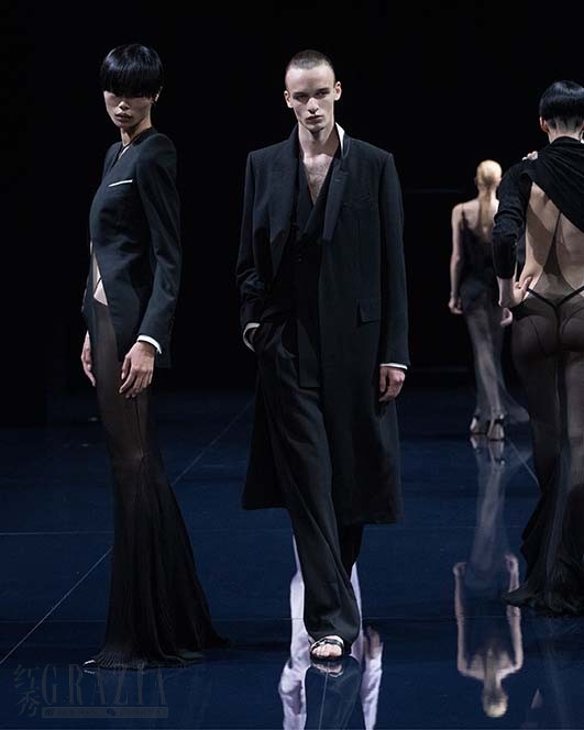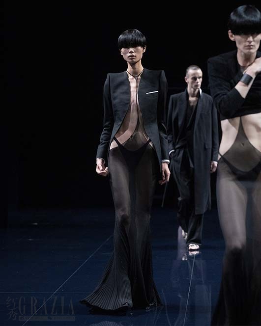 我在这场幻梦中,窥见一种高贵。它定格于利落刘海与倏然绽放的唇色之间,流淌于垂直剪裁中的诱人气息,飘逸布料的律动中藏着温柔的决绝;她们坦然地展露肌肤,亦在不经意间,透露出动感的暗示。