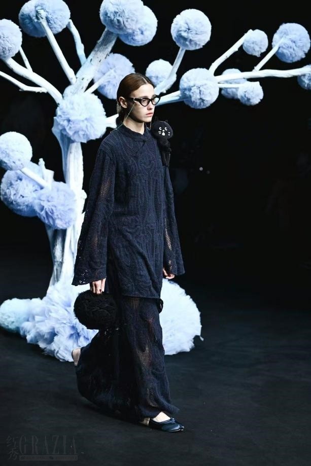 藏于纱间的亮片,软糯毛线球与蓬松纱球错落点缀,为也行秘境注入甜趣灵韵。材质的碰撞织就奇幻乐章,让穿着者化身踏入秘境的寻梦人,在自然野趣与浪漫星光中,邂逅一场绿野奇遇。