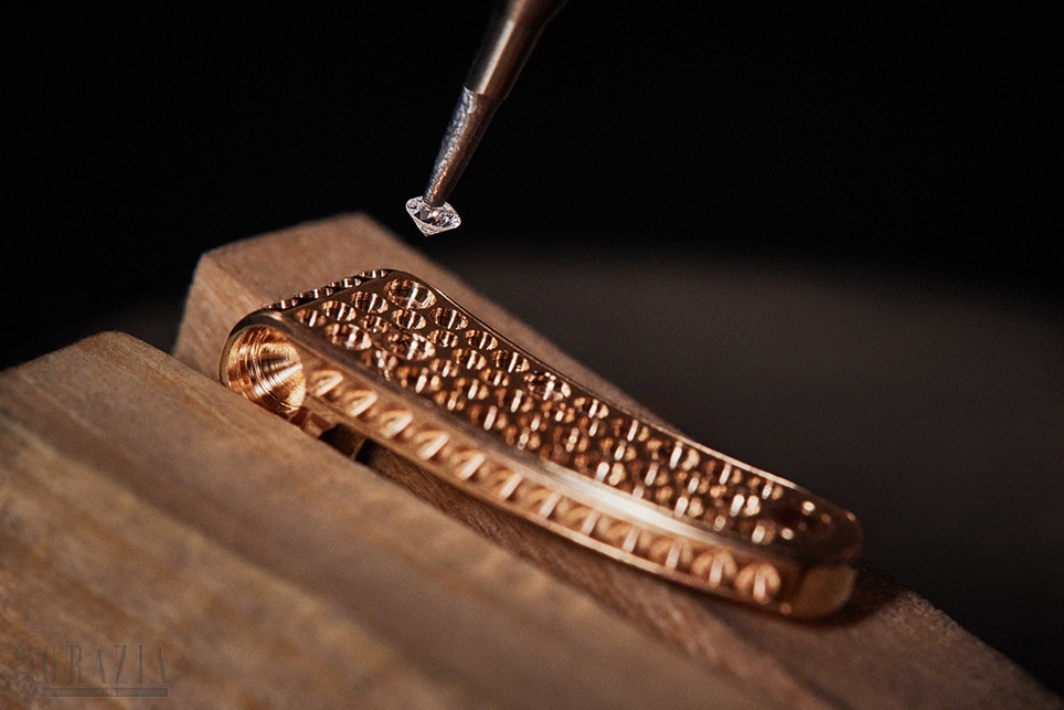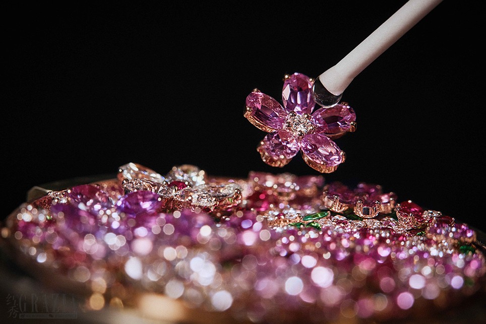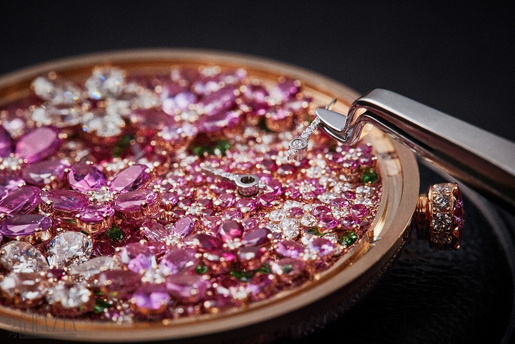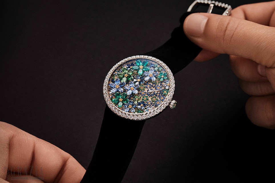 迪奥挚献LA D DE DIOR系列BUISSON COUTURE高级腕表,以璀璨花簇开启美学新境。甄选彩色宝石化作盛放的花瓣,精心点缀于表盘之上,谱写对瑰丽世界的诗意诠释。绚烂的色彩在“花簇”间谐美交织,宛如一场流动的视觉盛宴,赞颂迪奥先生对自然的真挚热爱。