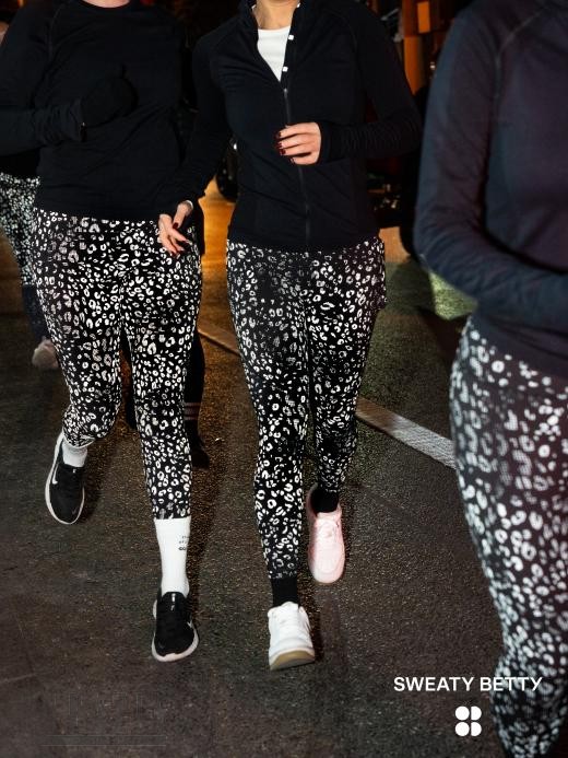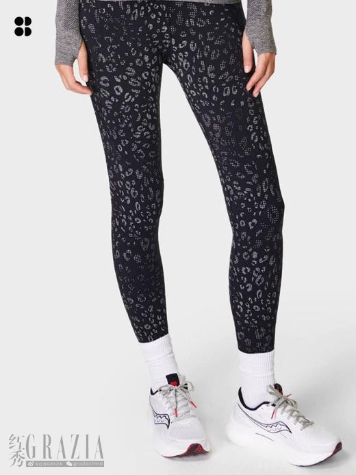 SWEATY BETTY Power热力系列黑色反光豹纹九分紧身裤