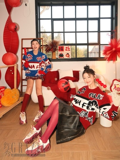 【多位艺人上身FILA新春系列“腮红毛衣”“抓马毛衣”与“抓马卫衣”】