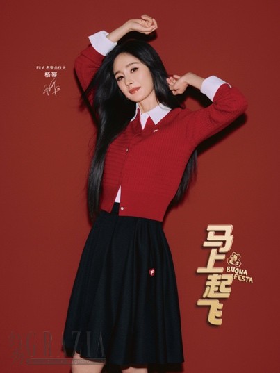【FILA马上起飞新春系列单品“腮红毛衣”,由FILA 名誉合伙人杨幂倾情演绎】