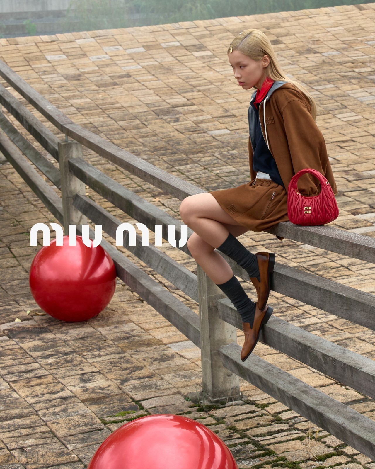 Miu Miu 2026新春系列传递出乐观、自由的态度,与节日的新生气息共鸣。廓形在结构与舒适间取得平衡:拉链夹克、大廓形连帽衫、缩小版针织衫、及膝百褶裙或伞裙、结构感长裤、叠穿吊带以及露肩连衣裙。色调从灰、棕、藏青、黑、白延伸至象征吉祥富贵的正红色。核心手袋款式涵盖Wander、Arcadie、Aventure、Pocket系列,采用做旧软羊革、绒面软羊革及Matelassé皮革材质,除经典色调外,更推出金属银与新春红配色。