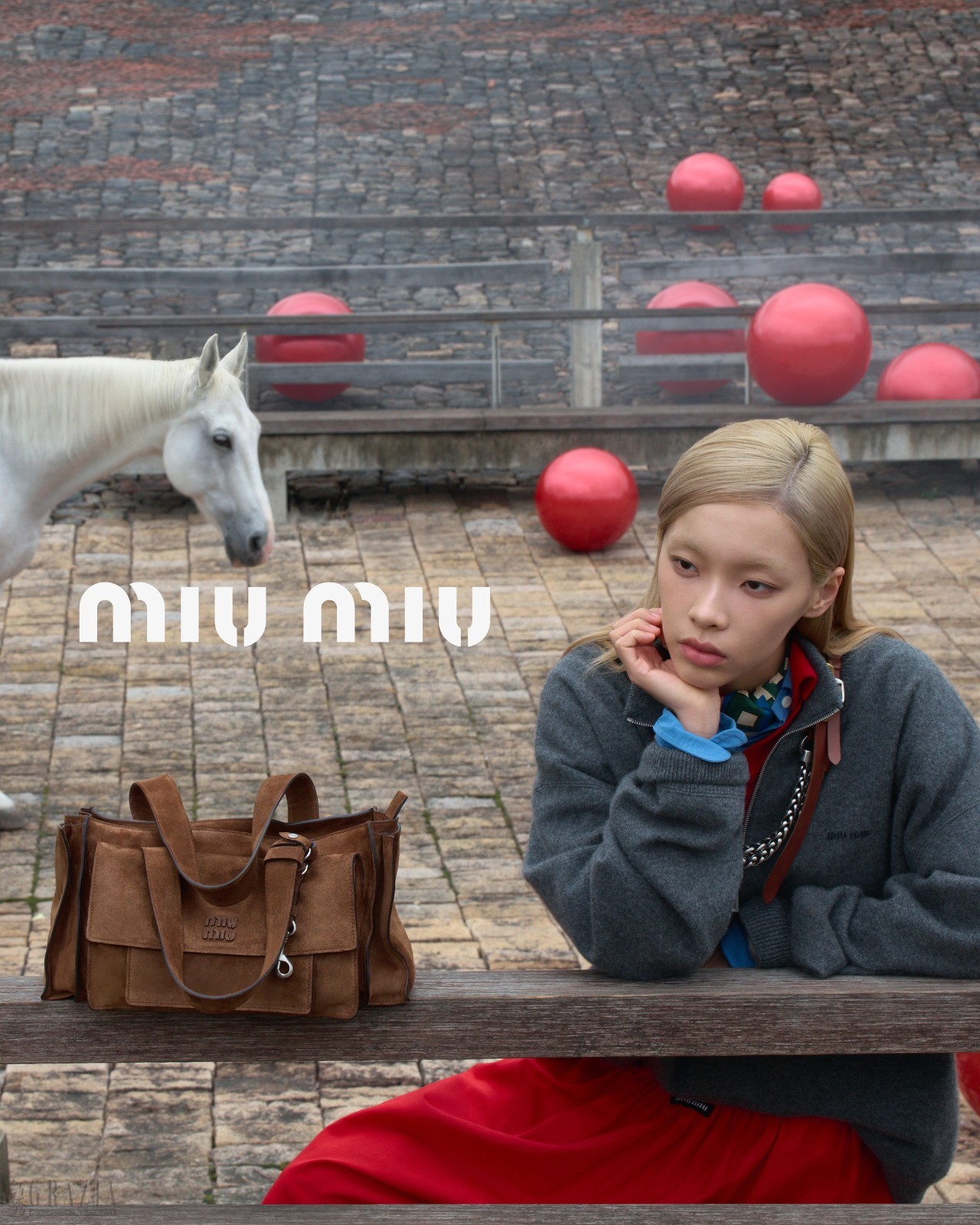 Miu Miu发布第二部新春特别短片《如期而遇》(The Encounter),庆祝2026中国新春,专为火马年精心构思。短片由中国导演顾游执导,摄影师李思浩掌镜,取景于杭州的公望美术馆——这座融合现代设计与自然意象的地标建筑坐落于群山环抱间,点缀着散落的红球与柔和的冬雾。Miu Miu品牌大使刘柏辛与赵今麦联袂出演,诠释时空共振下的诗意叙事。两位主角穿梭于屋顶、楼梯与开阔庭院,邂逅一匹象征独立、生命力与生肖马之蓬勃朝气的白色骏马。都市与乡野交融的场景强化了现实与梦幻、现代与记忆、实用与优雅的对比——这正是Miu Miu想象宇宙的核心语汇。