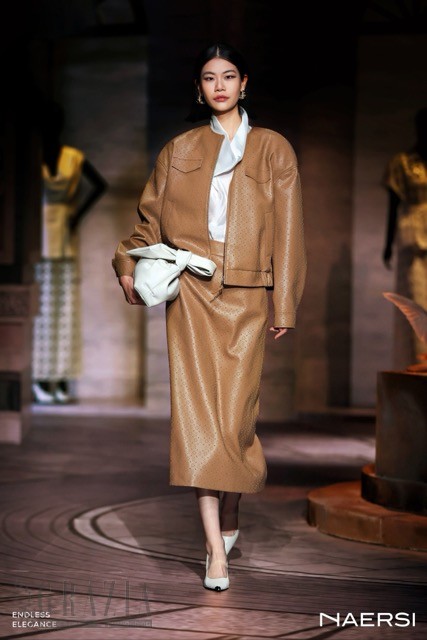 本次大秀以“无界优雅”为主题,NAERSI优雅工坊作为品牌标志性的高级成衣创作核心,本季将创作灵感深入世界文化遗产之城佛罗伦萨,与西方古典匠艺展开深度对话,开启一场溯源“百合之都”的艺术探索之旅。